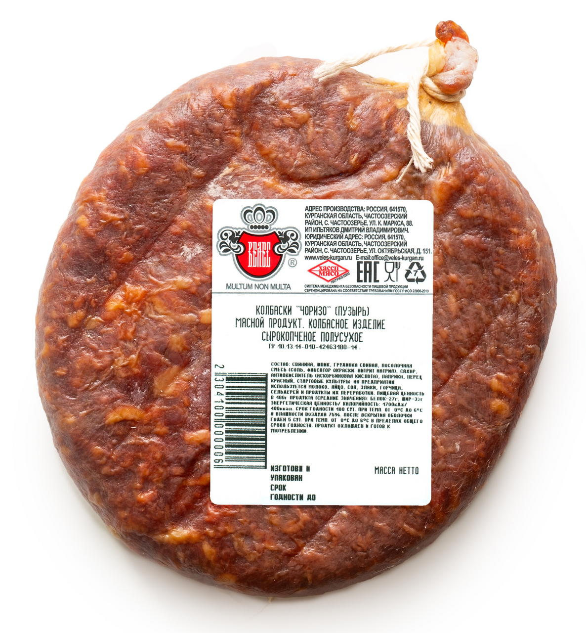 Колбаса Велес Чоризо сырокопченая, ~1кг