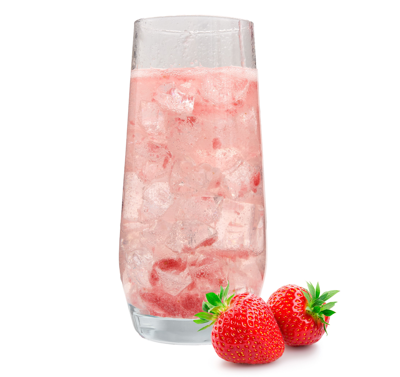 Сахар, ягоды клубники быстрозамороженные, концентрированный клубничный сок, вода питьевая, регулятор кислотности - лимонная кислота, ароматизатор Клубника, краситель - антоцианы, консерванты - сорбат калия, бензоат натрия.