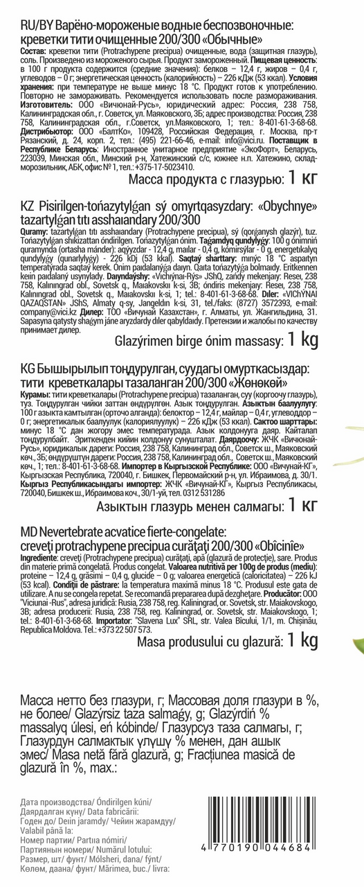 Это высокобелковый диетический продукт почти не содержит жиров и углеводов, зато в нем много витаминов, минералов и аминокислот. Особая технология замораживания с глазурью позволяет сохранить полезные вещества и предотвратить усыхание. Креветки оптимально подходят для приготовления салатов, пасты с морепродуктами и других кулинарных блюд.
