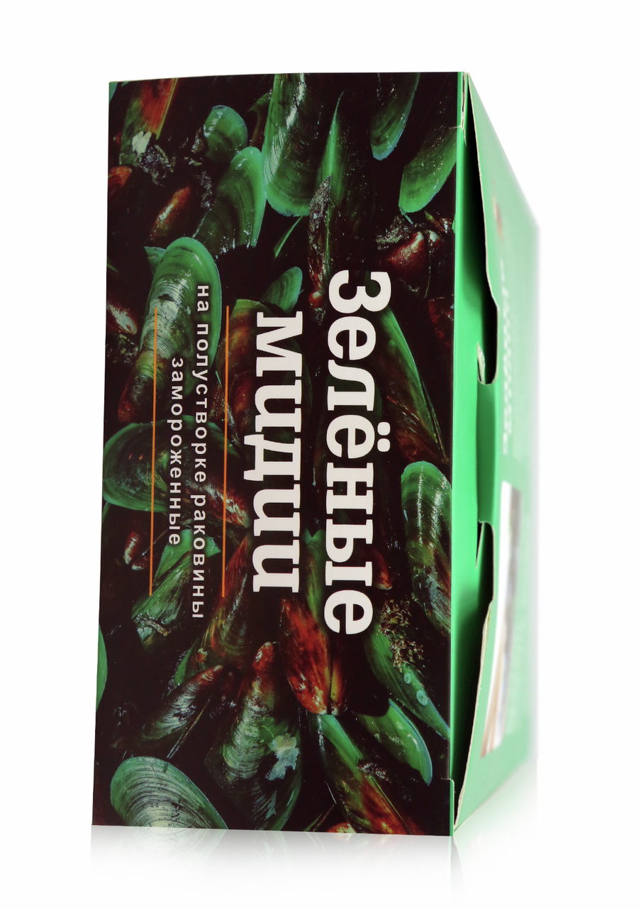 Мидии зеленые на 1/2 раковины замороженные, 1кг