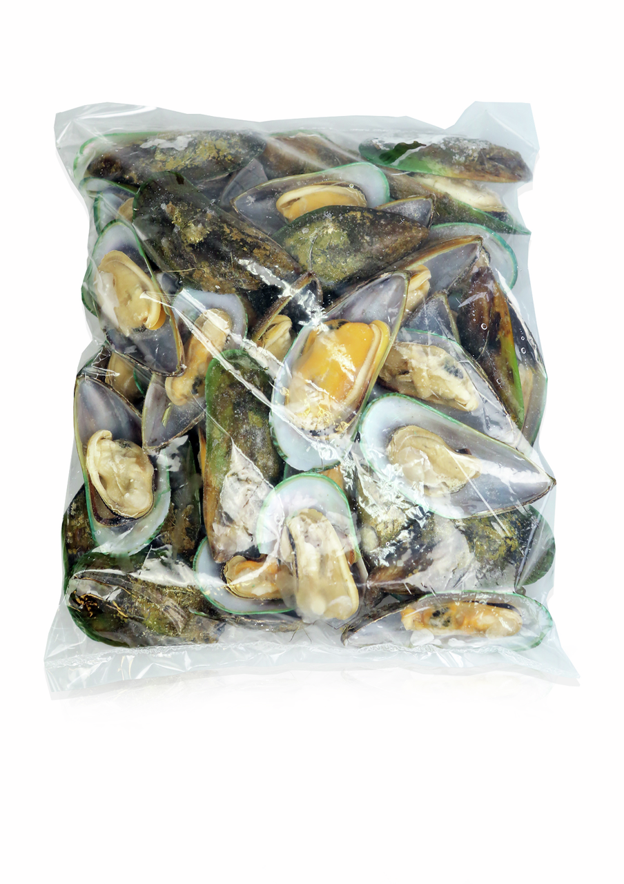 Мидии зеленые замороженные, 1/2 раковин можно готовить на пару, запекать на гриле или в духовом шкафу, обжаривать с чесноком, отваривать в смеси из лука, чеснока, душистых трав и специй. Они отличаются упругой нежной текстурой и насыщенным приятным вкусом. Морепродукты являются источником ценного белка, жирных кислот, витаминов из группы В, D, содержат цинк, йод, марганец и другие элементы. При включении в рацион они положительно сказываются на работе печени, активизируют мозговую деятельность, укрепляют иммунитет.