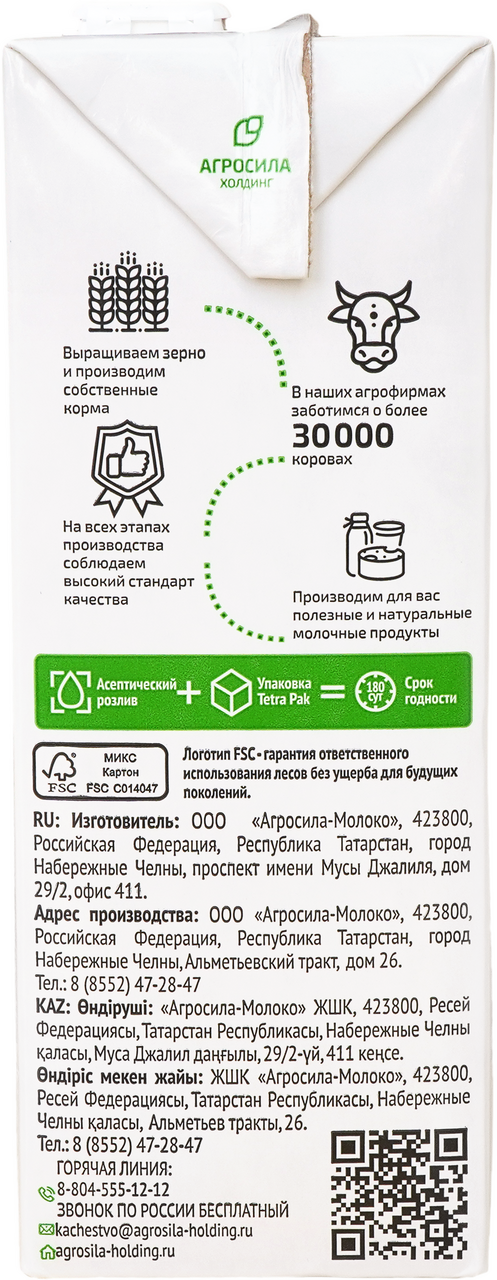 Молоко Агросила Халяль ультрапастеризованное 3.2%, 1кг