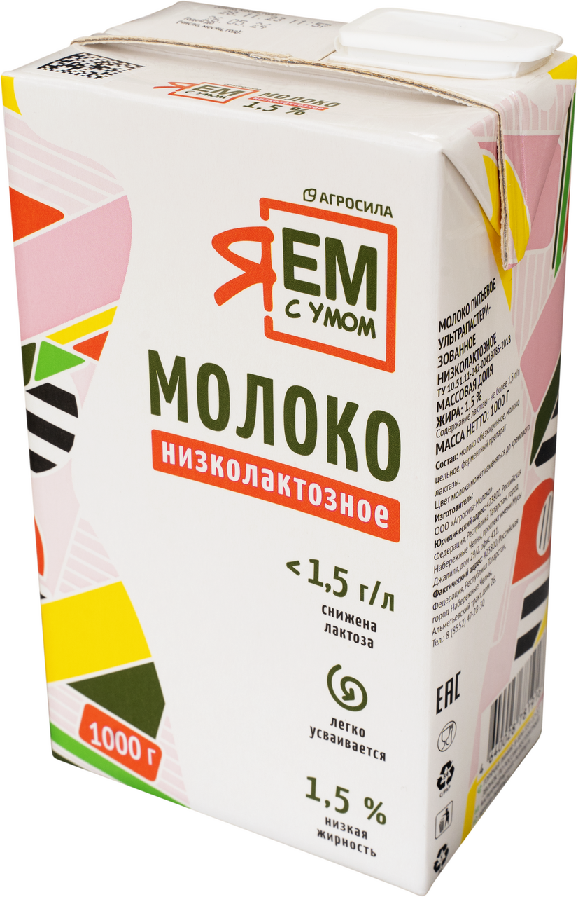 Молоко Я ем с умом ультрапастеризованное низколактозное 1.5%, 1кг