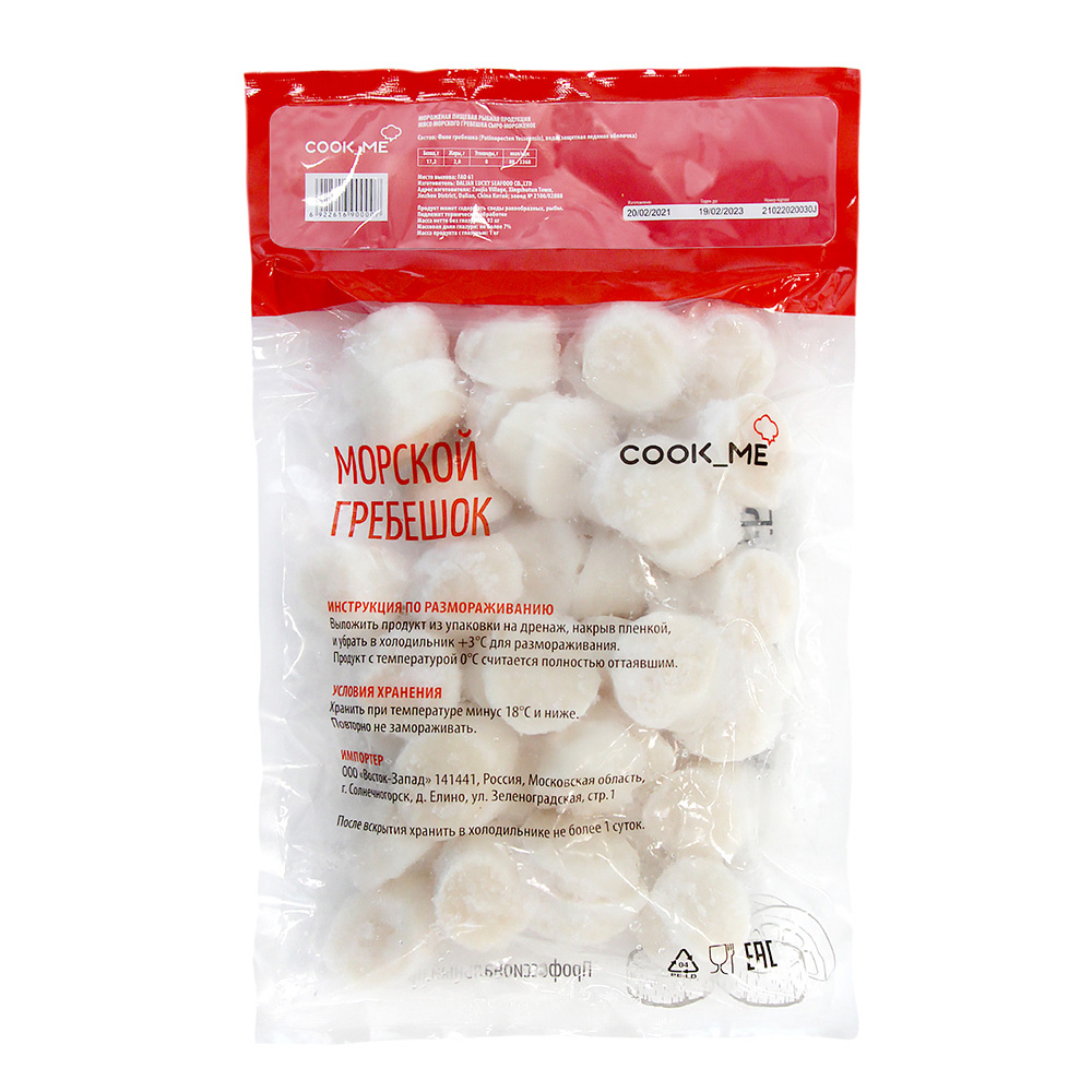 Гребешок морской Cook me 7% 10/20, 1кг - изысканный морской деликатес, который разнообразит ваше привычное меню и не потребует много времени на приготовление. Нежное, чуть сладковатое мясо морских гребешков, являющееся изысканным и дорогим деликатесом, поступает в замороженном и соленом виде. В пищу идут плотный мускул-замыкатель и икряной мешочек, из которых готовят как самостоятельные блюда, так и сочетают с разнообразными продуктами. Приготовление морского гребешка не требует особых познаний в кулинарии и, по большому счету, ограничивается только фантазией повара. Особенно богата рецептами приготовления гребешков французская кухня: многочисленные салаты, заливное, голубцы, и даже котлеты и начинка для пирожков - лишь неполный перечень кулинарных шедевров. Среди гурманов очень популярны сырые гребешки, политые оливковым маслом и лимонным соком. Мясо гребешков нежное, слегка сладковатого вкуса. Морские гребешки используют для приготовления различных блюд. Их также можно употреблять в пищу и сырыми. Гребешки используют для приготовления вторых блюд, а также салатов. Приобрести гребешок морской Cook me 7% 10/20, 1кг можно в торговом центре METRO.