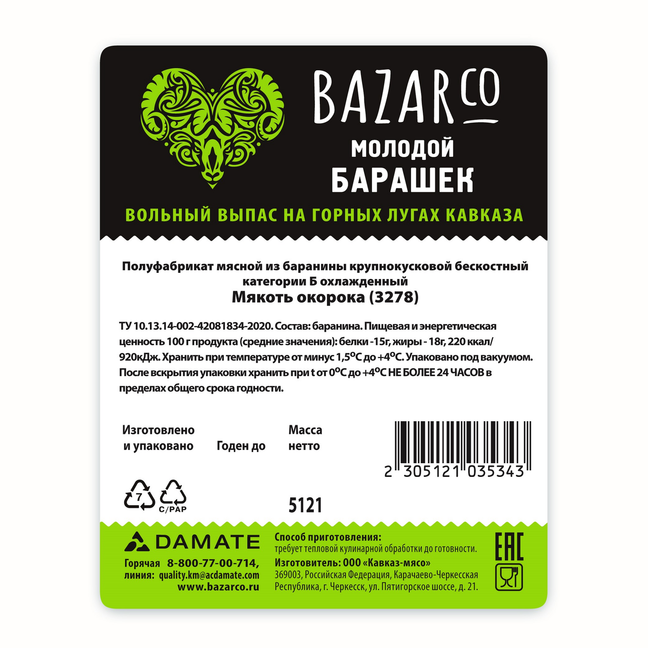 Мягкая и нежная мякоть окорока молодого барашка BazarCo подойдет для жарки на гриле или сковороде, запекания, приготовления шашлыка или жаркого. Благодаря небольшой жировой прослойке, эта часть барашка сохранит сочность и яркий вкус при любом способе приготовления. Можно нарезать мясо на порционные куски и пожарить, потушить, сварить бульон. Приготовьте из окорока BazarCo хрустящий шницель, шашлык или плов.