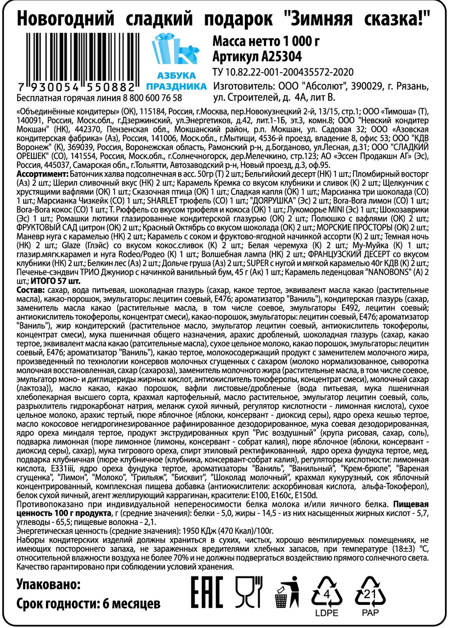 Подарок новогодний Азбука Праздника Зимняя сказка, 1кг