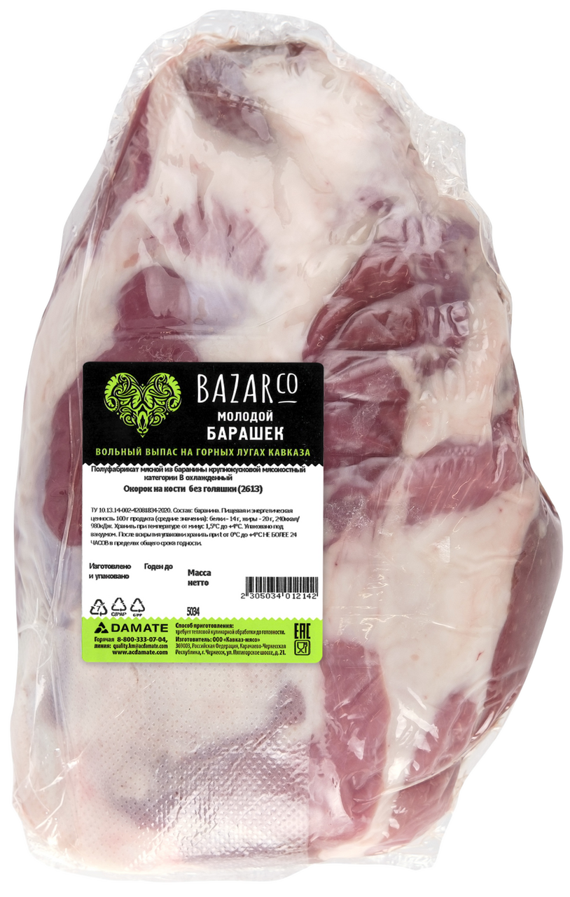 Окорок молодого барашка Bazarco Халяль на кости без голяшки охлажденный, ~1кг
