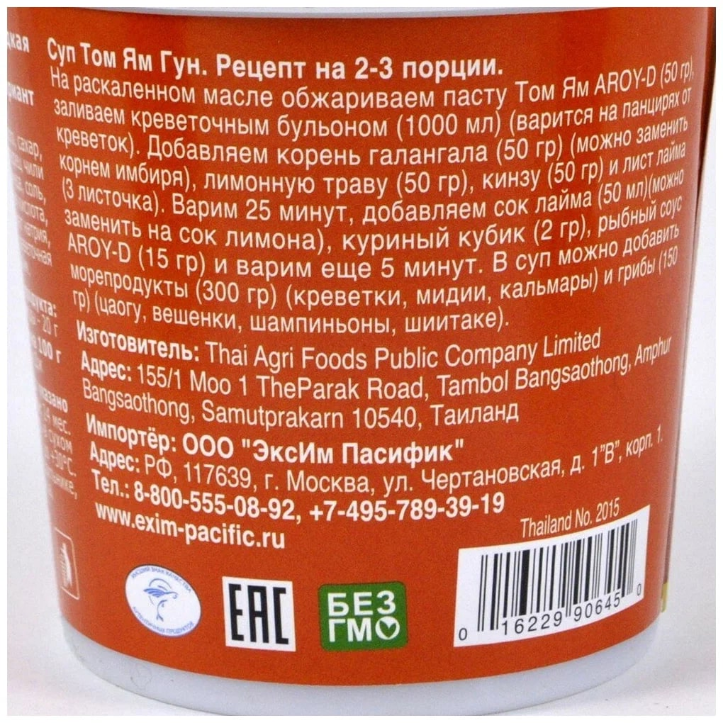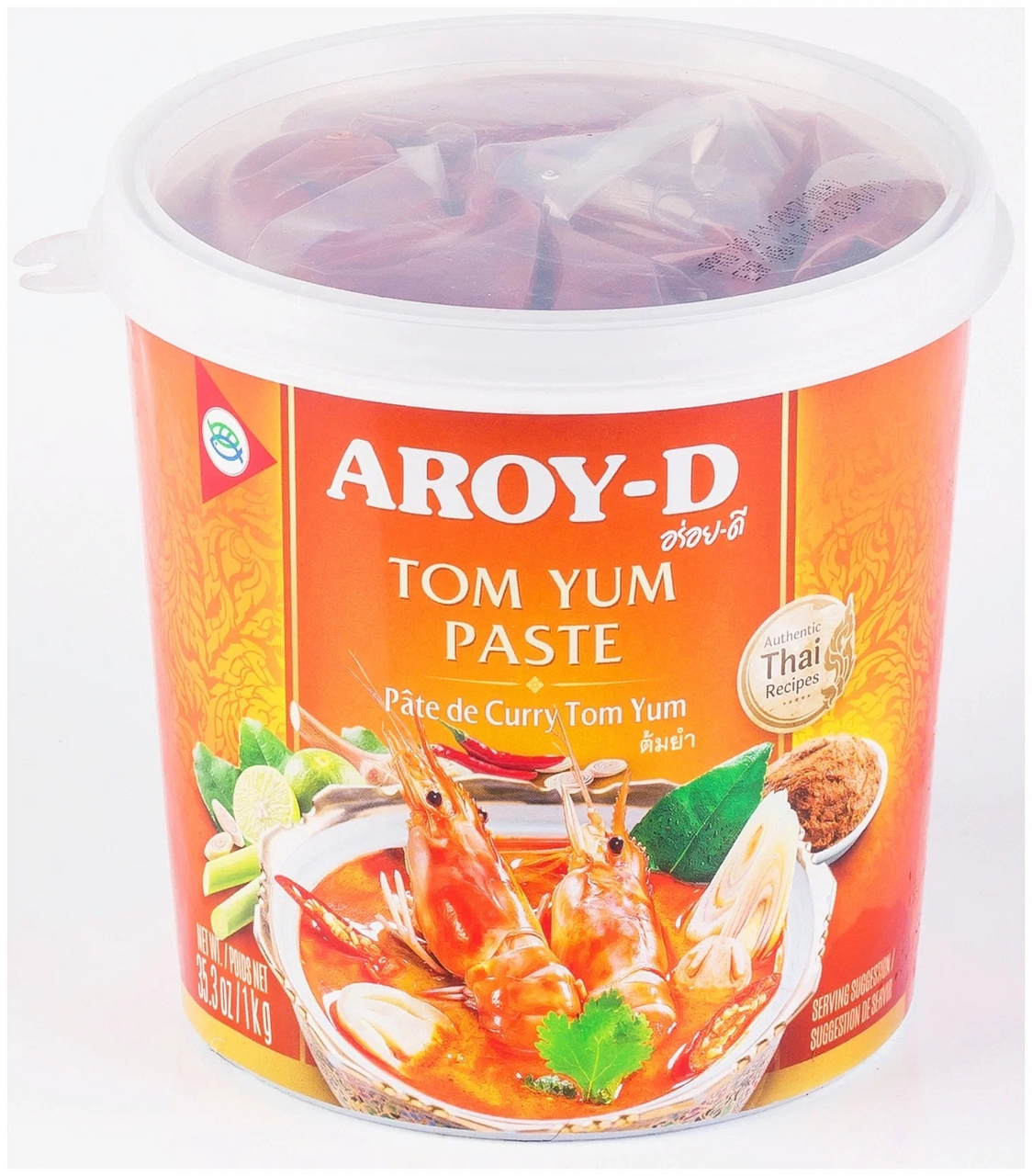Паста aroy-D Том ям, 1 кг – отличный вариант приправы для приготовления не только том яма, но и разнообразных блюд из птицы, мяса, рыбы и морепродуктов. Она характеризуется богатой энергетической и питательной ценностью. В ее основе лежат разнообразные измельченные специи, которые придают блюдо богатый вкус и насыщенный аромат. В частности, лук шалот, галангал, красный перец или придают пасте пряный остро-кислый вкус. Продукция поставляется в плотной баночке с ярким оформлением. Хранить ее необходимо в сухом и прохладном месте, соблюдая температурный режим от +5 до +30 градусов. При этом важно, чтобы упаковка была защищена от прямого воздействия солнечных лучей. После вскрытия баночку с содержимым следует хранить в холодильнике.