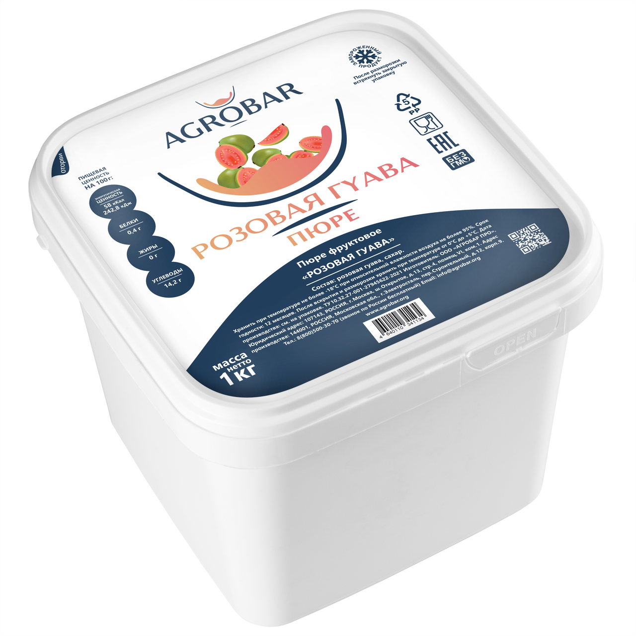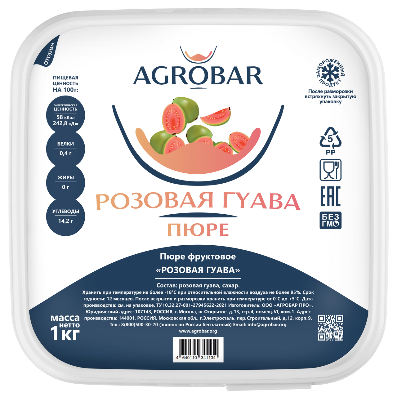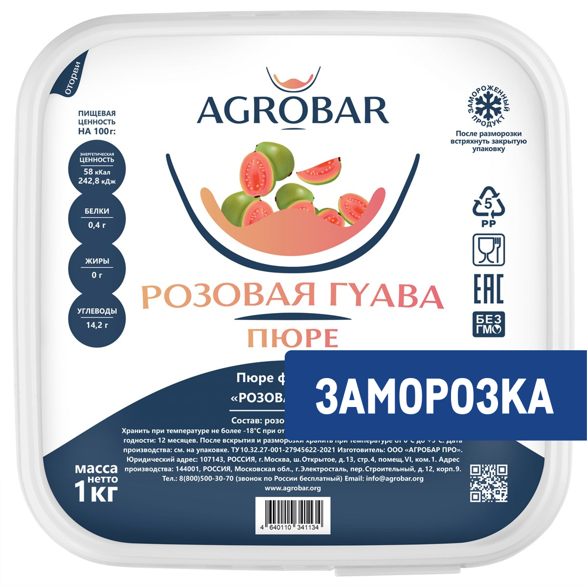 Пюре фруктовое Agrobar Розовая гуава замороженное, 1кг