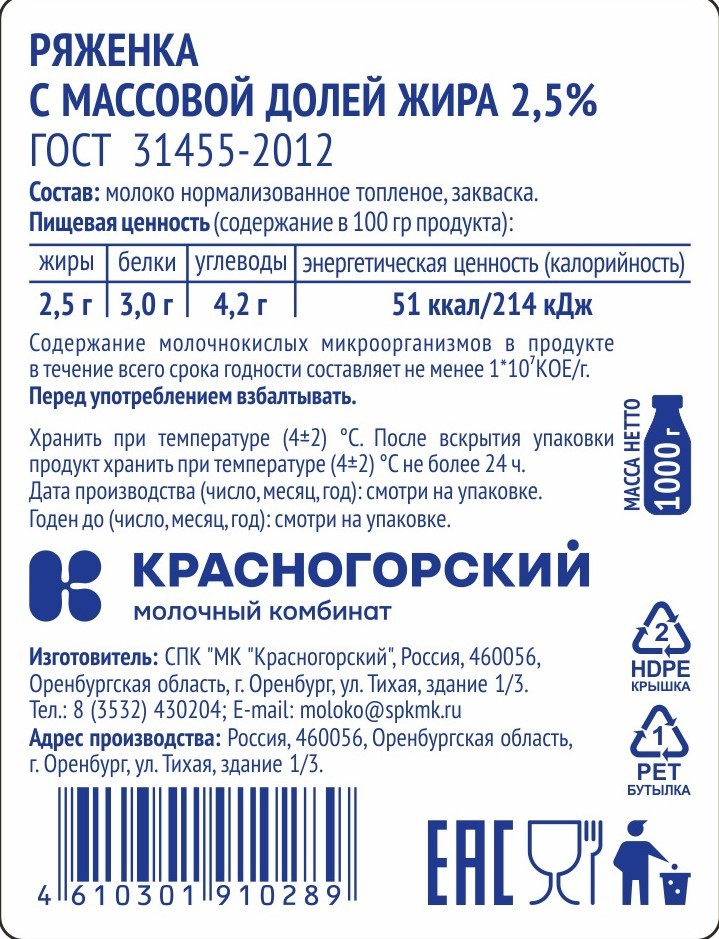 - Жирность, % 2.5