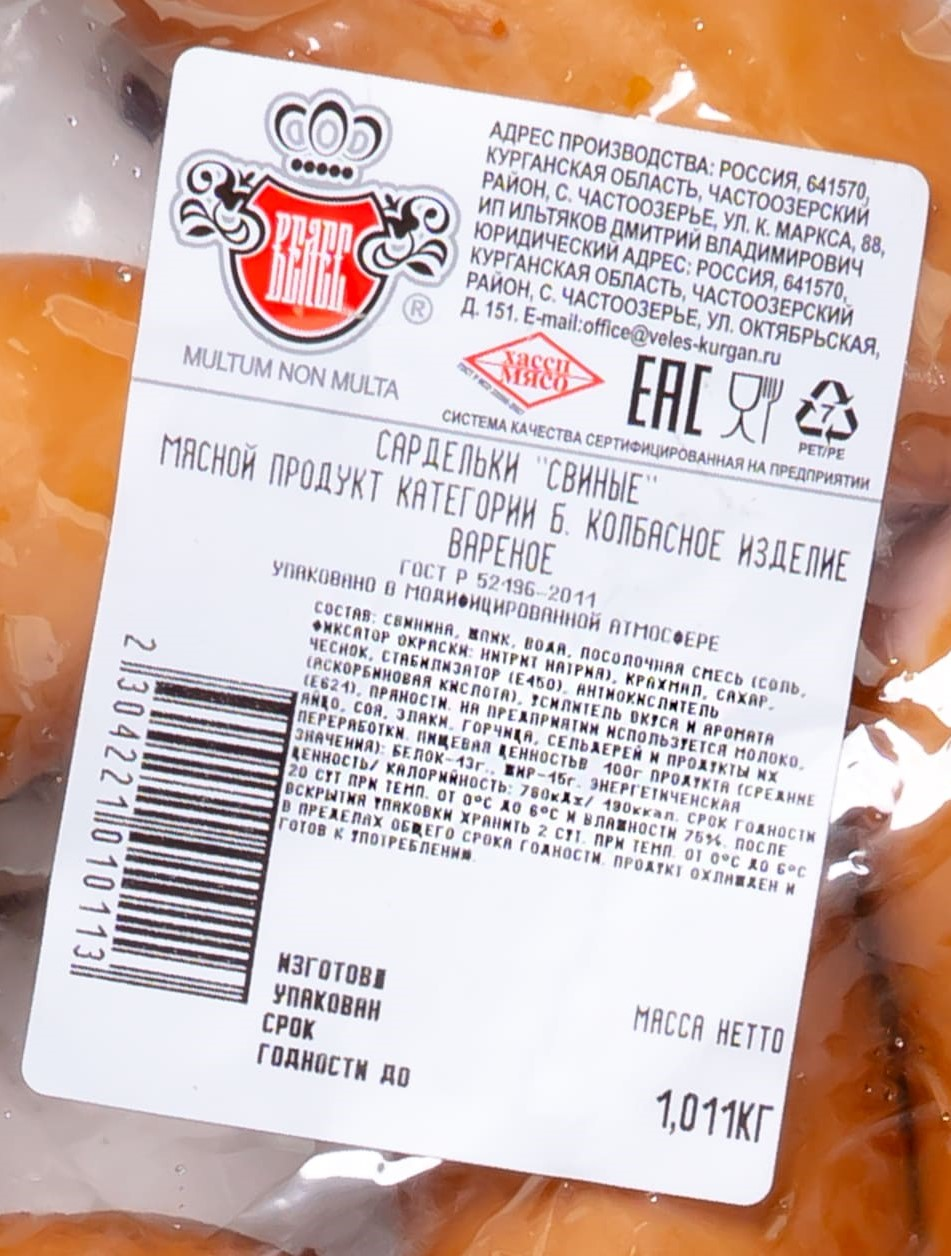 Свиные сардельки в натуральной оболочке – идеальная начинка для бутербродов, омлетов или горячих сытных блюд. Для их изготовления была использована отборная парная свинина с добавлением небольших кусочков шпика, что позволяет свиным сарделькам оставаться сочными, какой способ приготовления вы бы не выбрали. Обжарьте их на сковороде вместе с луком, разогрейте в микроволновке или сварите для салата — результат будет превосходным. Этот мясной продукт входит в состав многих блюд. Например, рагу в немецком стиле. Нарежьте свиные сардельки, добавьте их вместе с белой фасолью в кипящий томатный соус. Переложите заготовку в форму для запекания, присыпьте панировочными сухарями и мелко натертым сыром, отправьте в духовку на 20-30 минут.