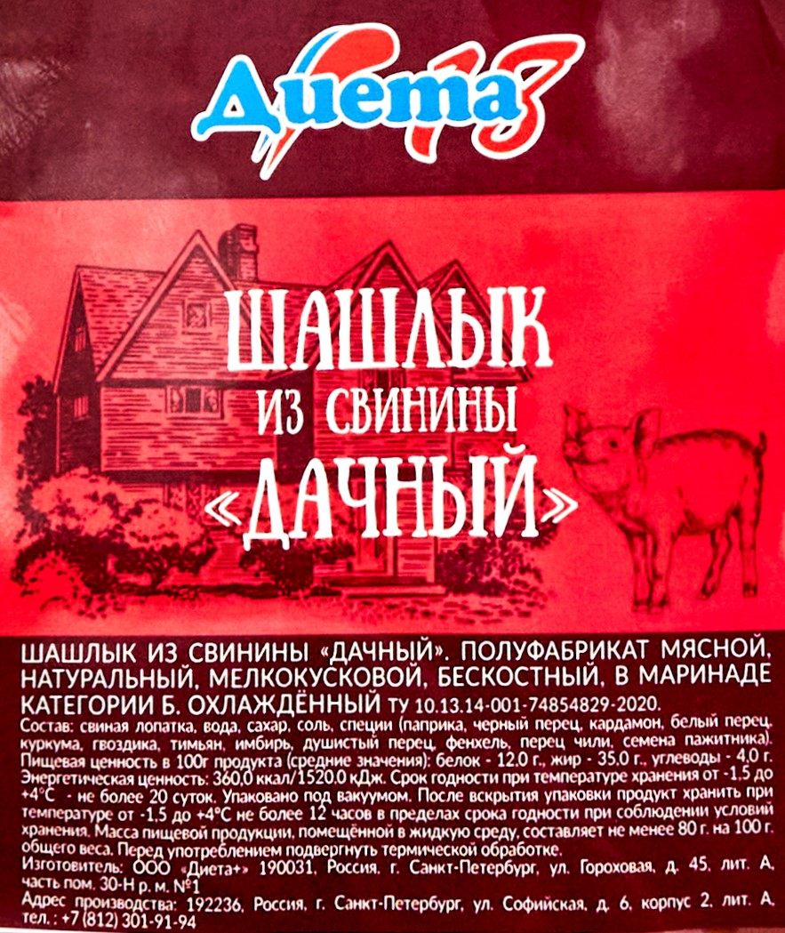 Шашлык из свинины Диета18 Дачный охлажденный, ~1кг