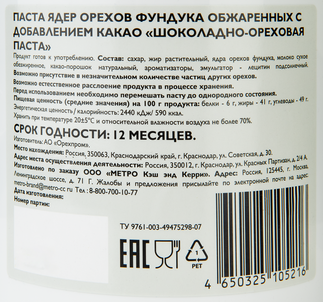 Паста ядер орехов фундука обжаренных с добавлением какао Шоколадно-ореховая паста. Это настоящий деликатес для любителей сладкого. Сочетание нежной текстуры и богатого вкуса создают идеальное сочетание для завтраков или десертов. Шоколадная пста полезна тем, что содержание какао-тертого и масла позволяет насытить организм полезными жирами и микроэлементами, он способствует быстрому обновлению клеток в организме и поднимает настроение. Ее можно применять как глазурь для булочек, приготовления напитков, а также употреблять на завтрак с хлебом или солеными крекерами, обмакнуть в нее снэки, сделать питательный перекус.