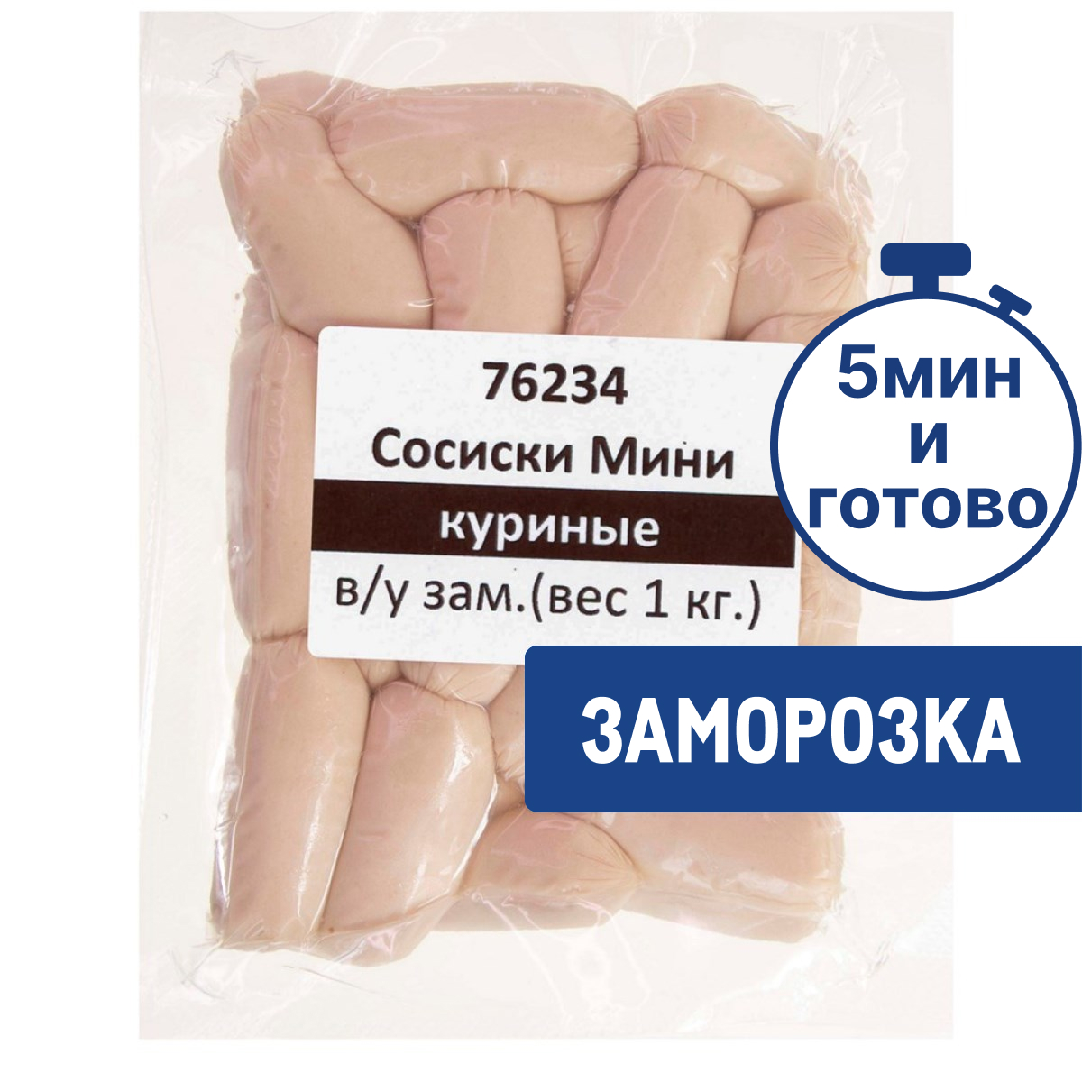 Сосиски куриные Ремит мини вареные замороженные, ~1кг