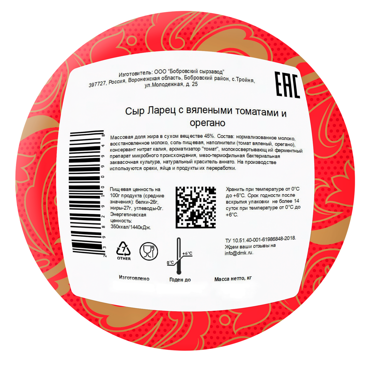 Сыр Ларец Вяленые томаты-орегано 45%, ~1кг