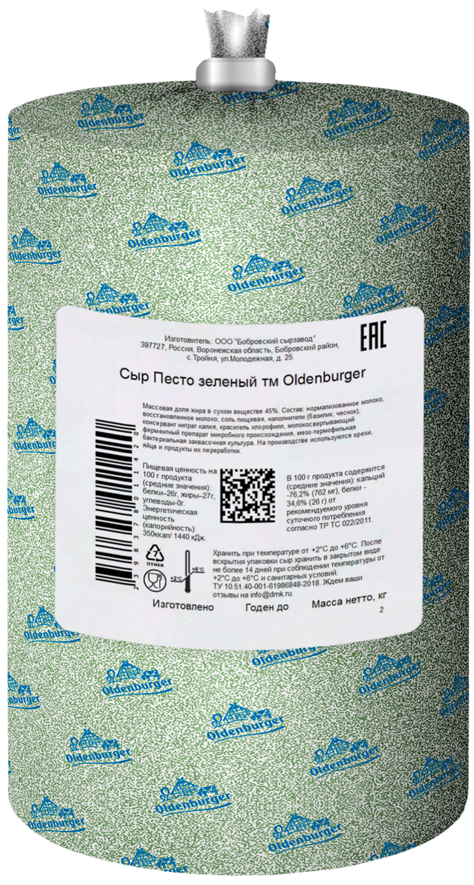 Сыр Песто Oldenburger зеленый 45%, ~1кг
