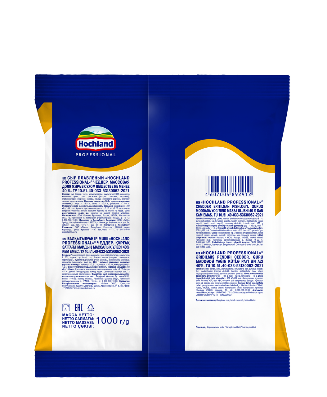 Сыр Hochland Professional Чеддер для соуса плавленый 40%, 1кг