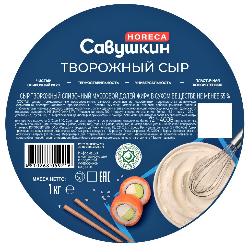Сыр творожный Савушкин продукт сливочный 65%, 1кг
