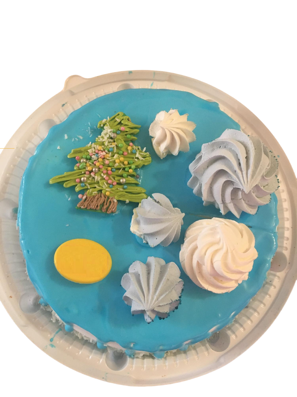 Торт ЗОЛОТОЙ КОЛОС Новогодняя мечта станет главным украшением праздничного стола. Нежный бисквит с клюквенным соусом в сочетании со сливочным кремом и кремом Лайт не оставит равнодушными любителей сладкого. Десерт украшен безе и фигурками из шоколадной глазури.