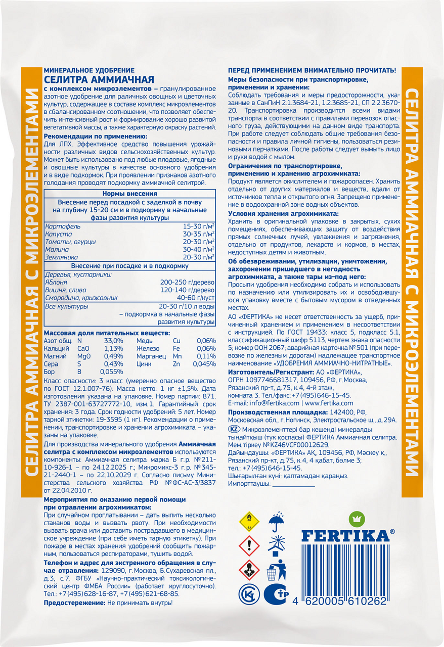 Универсальное азотное удобрение. Хорошо растворяется в воде, может быть использовано в качестве основного удобрения и в виде подкормок любых плодовых, ягодных и овощных культур. При появлении признаков азотного голодания проводят внекорневую подкормку. В качестве основного удобрения и в виде подкормок любых плодовых, ягодных и овощных культур.