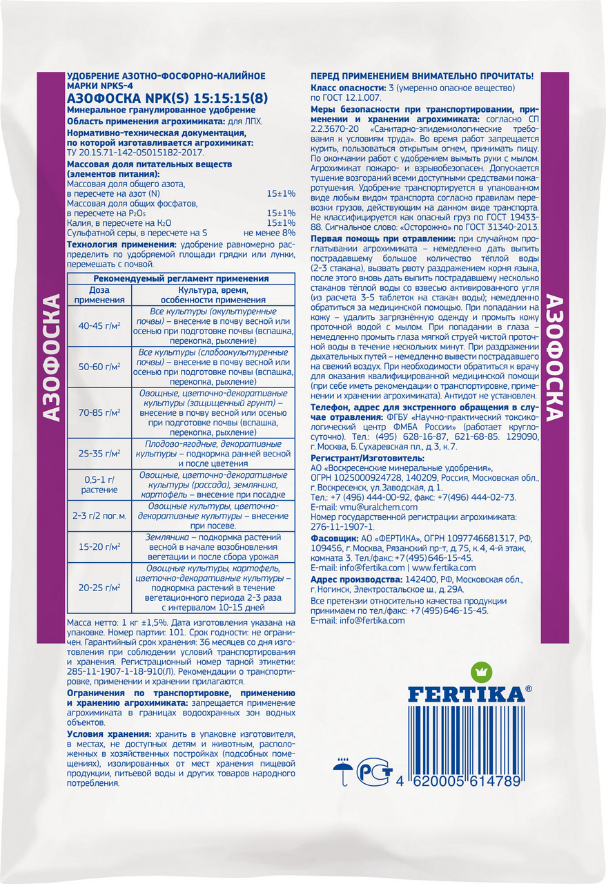 Гранулированное универсальное минеральное средство, содержит азот, фосфор и калий в оптимальной пропорции. Обеспечивает активное развитие всех типов растений, повышает урожайность, улучшает качество и пролонгирует срок хранения плодов.