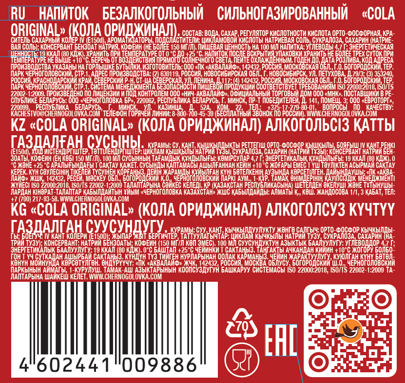 Любимый освежающий вкус, который дарит непосредственную радость и искренние улыбки. Ощущайте яркие эмоции в каждом глотке! Черноголовка Cola - улыбайся без остановки!