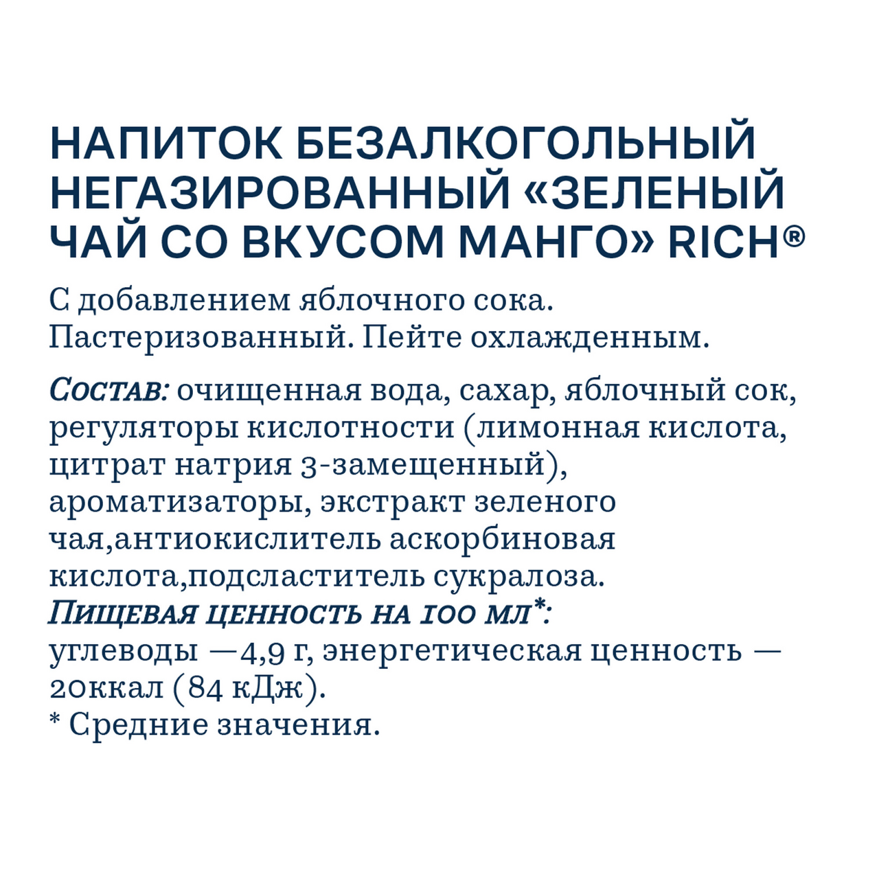 Холодный чай Rich tea зеленый со вкусом манго, 1л