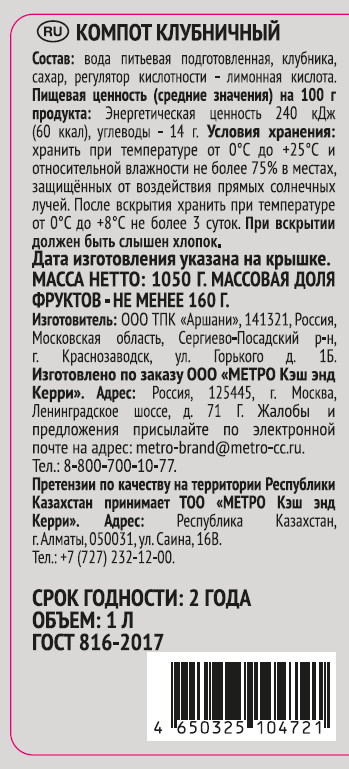 RIOBA Компот клубника, 1л