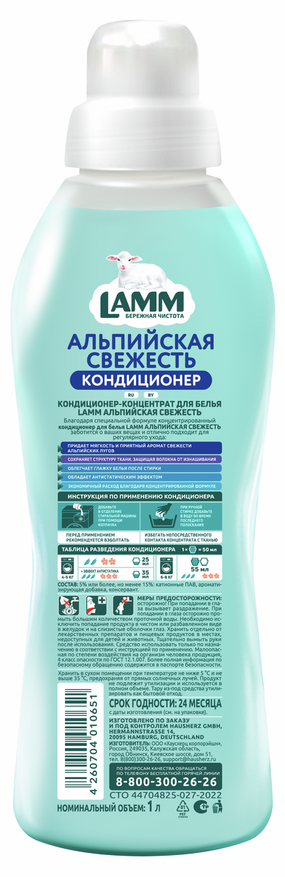 Кондиционер для белья Lamm Альпийская свежесть, 1л