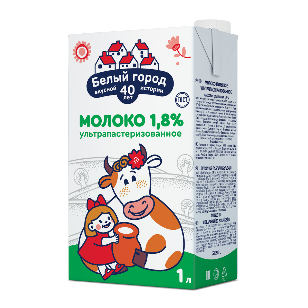 Молоко Белый город ультрапастеризованное ГОСТ 1.8%, 1л