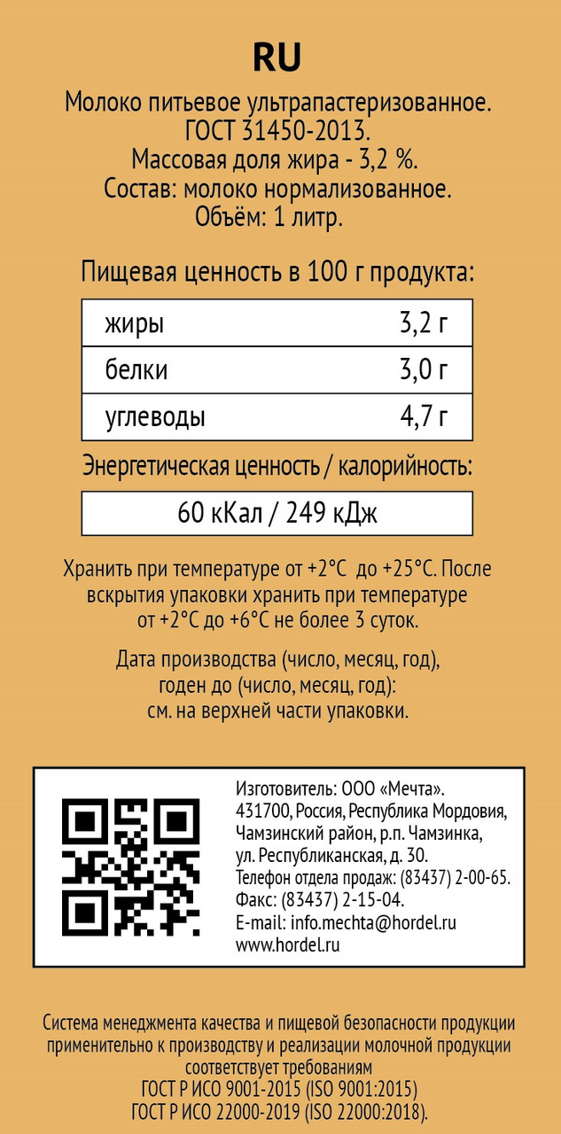 - Жирность, % 3.2