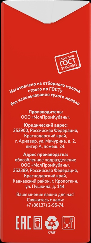 Производится из натурального коровьего молока, не содержит в составе искусственных добавок и консервантов. Бережная обработка и современная упаковка позволяют сохранить свежесть и вкус натурального коровьего молока. Ультрапастеризованное молоко обладает длительным сроком годности и на его протяжении сохраняет все свои полезные свойства. Ощутите природный вкус настоящего молока, в котором сохранились витамины и микроэлементы.