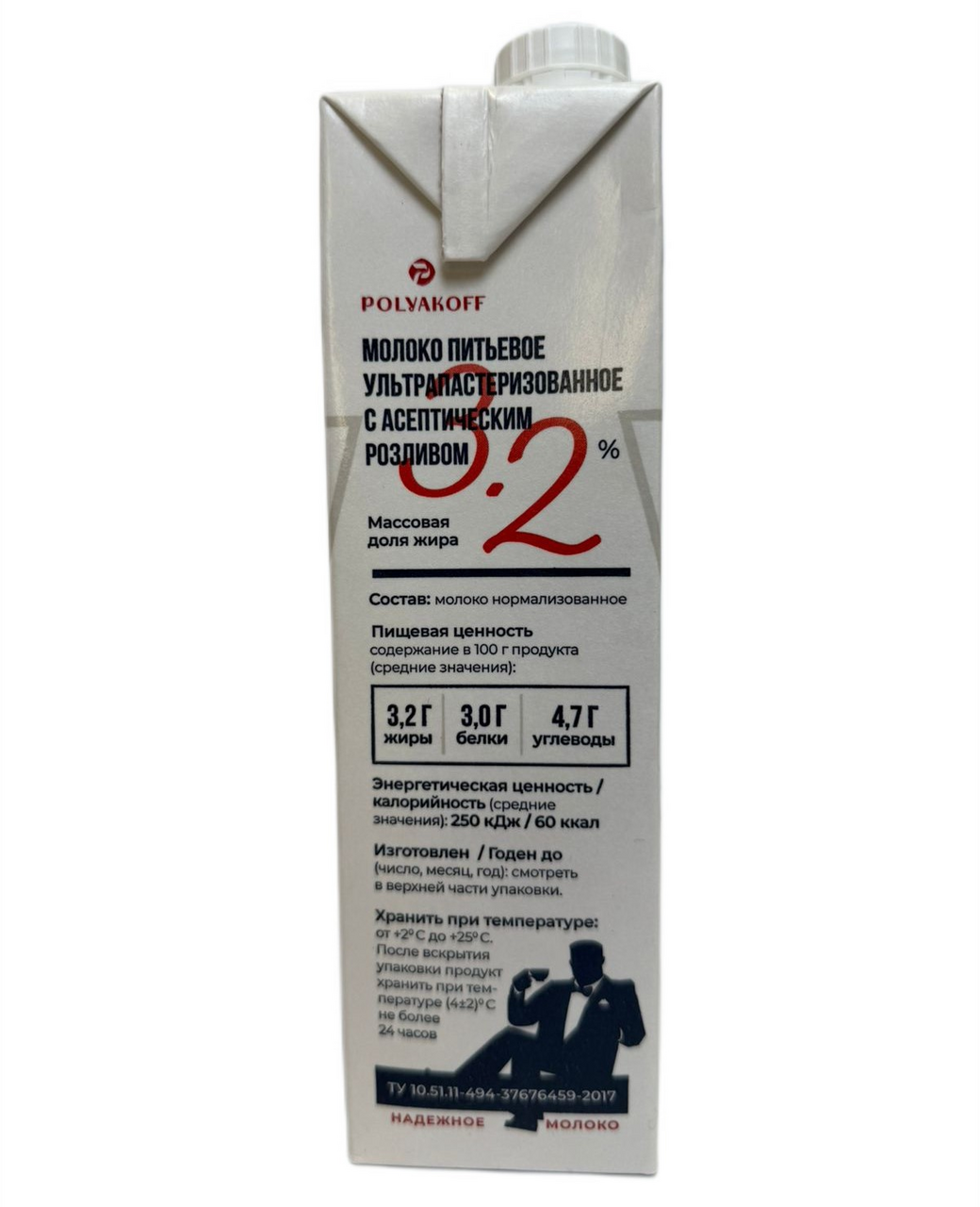 Молоко Polyakoff ультрапастеризованное 3.2%, 1л