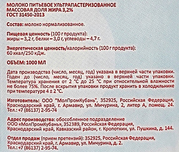 Натуральный продукт, с нежным естественный ароматом и насыщенным сладковатым молочный вкусом, без добавления сухого молока, красителей и консервантов, с низким содержанием лактозы. Питьевое молоко является источником множества питательных веществ и витаминов, богато кальцием, железом. Оно необыкновенно питательно и содержит полный набор полезных для жизни и роста человека веществ, доказано, что молочный белок лучше и легче усваивается организмом, чем белок мяса или рыбы. Можно использовать как самостоятельный напиток или готовить на его основе другие. Подходит для добавления в выпечку, основные блюда, соусы, коктейли.