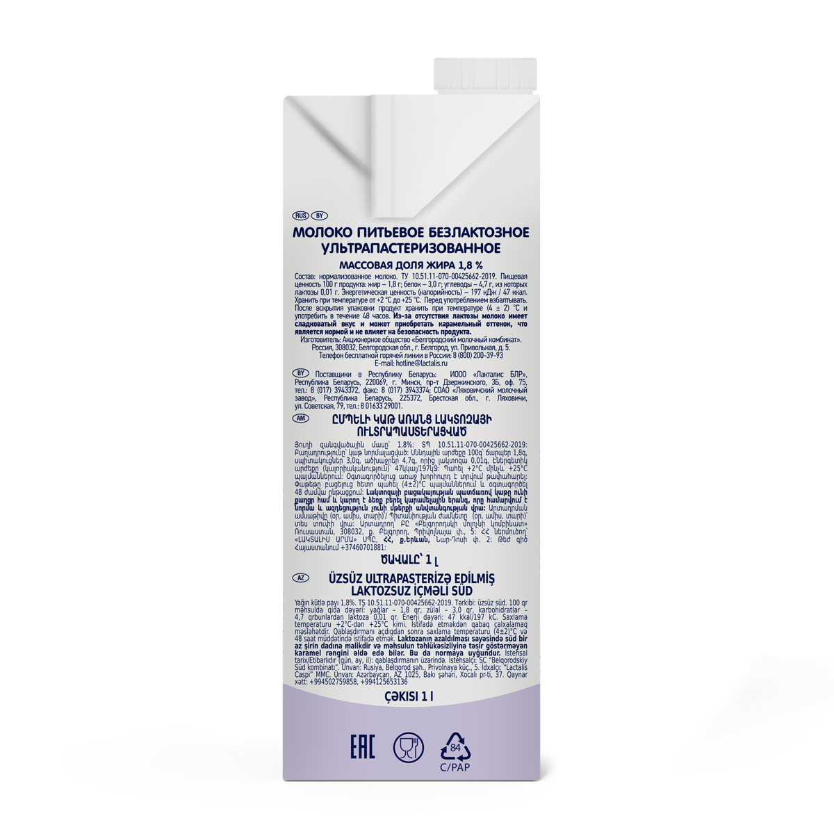 Молоко Белый город ультрапастеризованное безлактозное 1.8%, 1л
