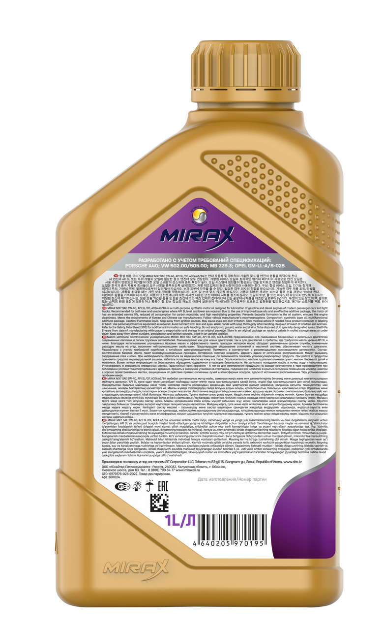 Масло моторное Mirax MX7 SAE 5W-40 API SL/CF, ACEA A3/B4, 1л