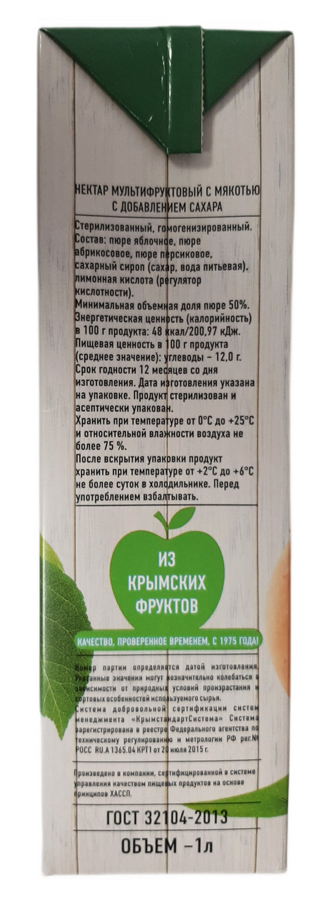 Нектар Соки Крыма Мультифруктовый, 1л из местных фруктов по технологии прошлых лет СССР, ГОСТ-стандарт.