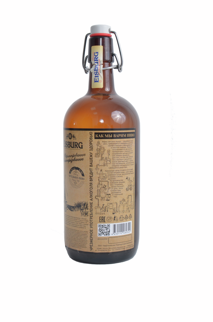 Пиво Redhop Эйсбург, 1 л — это напиток светло-золотистого цвета, который при переливе в бокал дает густую пенную шапку, плотность которой поддерживается благодаря пузырькам воздуха, создающим иллюзию легкой газированности. У напитка ненавязчивый хмельной аромат. Оптимальный температурный коридор подачи — от 4С до +6С. Пиво может употребляться как аперитив или подаваться в виде компаньона к классическим блюдам немецкой кухни: жаренным колбаскам, рульке, запеченному мясу или птице. Чтобы в полной мере насладиться оригинальным вкусом и ароматом пенного напитка, наливать его стоит, придерживаясь следующих правил: стакан необходимо держать под углом 45 градусов; струю напитка направляйте на середину стакана; слишком медленно не стоит наливать пиво, иначе не будет крепкой пенной шапочки; как только бокал наполнится наполовину, поставьте его вертикально; если пены оказалось слишком много (более 2-4 см), значит, напиток наливали слишком быстро и был неправильно выбран угол. Для напитка лучше всего использовать специальный пивной бокал или кружку – обычно объем такой посуды не меньше 0,3 л. Внутри сосуд должен иметь гладкие стенки, чтобы напиток мог стекать плавно.