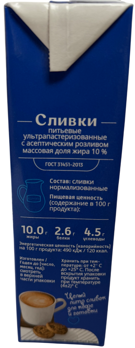 Сливки Едаковъ ультрапастеризованные ГОСТ 10%, 1л
