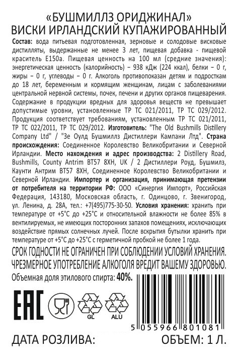 Со слов самого производителя является краеугольным камнем ассортимента Бушмилс. В его составе - смесь солодового виски тройной дистилляции и зернового ирландского виски. Именно такой бленд обуславливает мягкий и легкий характер напитка. Кроме того, данный рецепт является самым старым в Ирландии из дошедших до наших дней. Виски будет прекрасным дижестивом. Благодаря своему легкому вкусу, виски является великолепной основой для коктейлей.