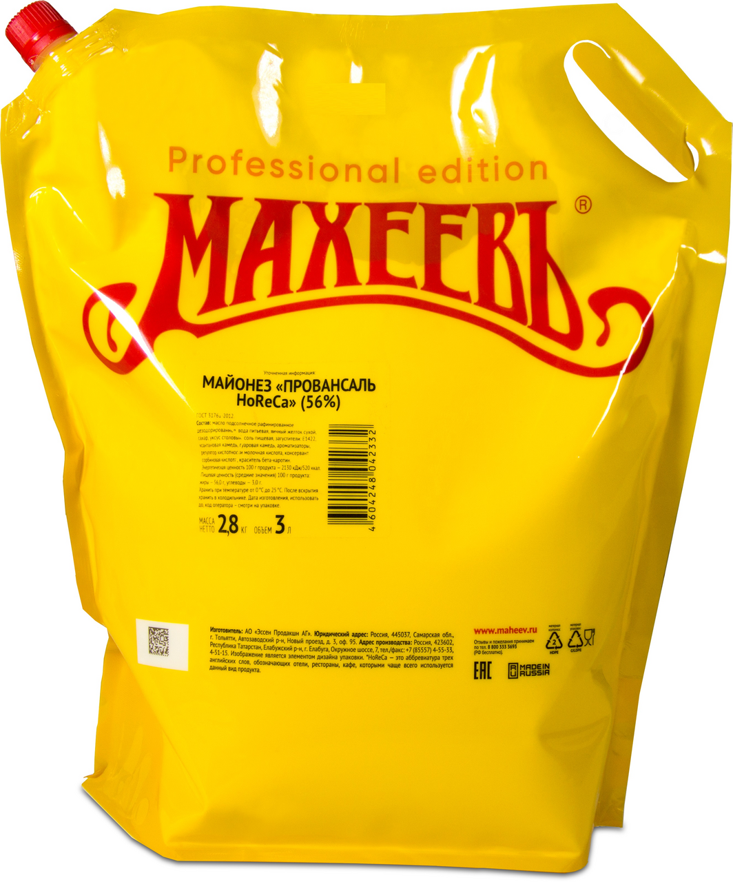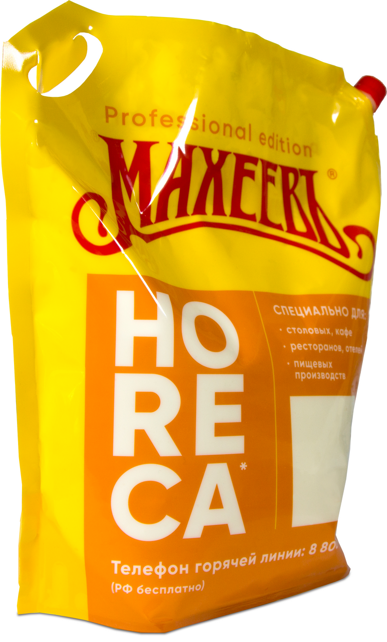 Майонез Махеевъ специально для сегмента HoReCa. Своей упаковкой удобен для кафе и ресторанов. Имеет непревзойдённый вкус, легко смешивается и не впитывается в продукты, при запекании образует золотистую корочку.
