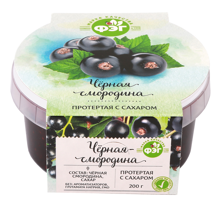 Смородина ФЭГ черная протертая с сахаром, 200г