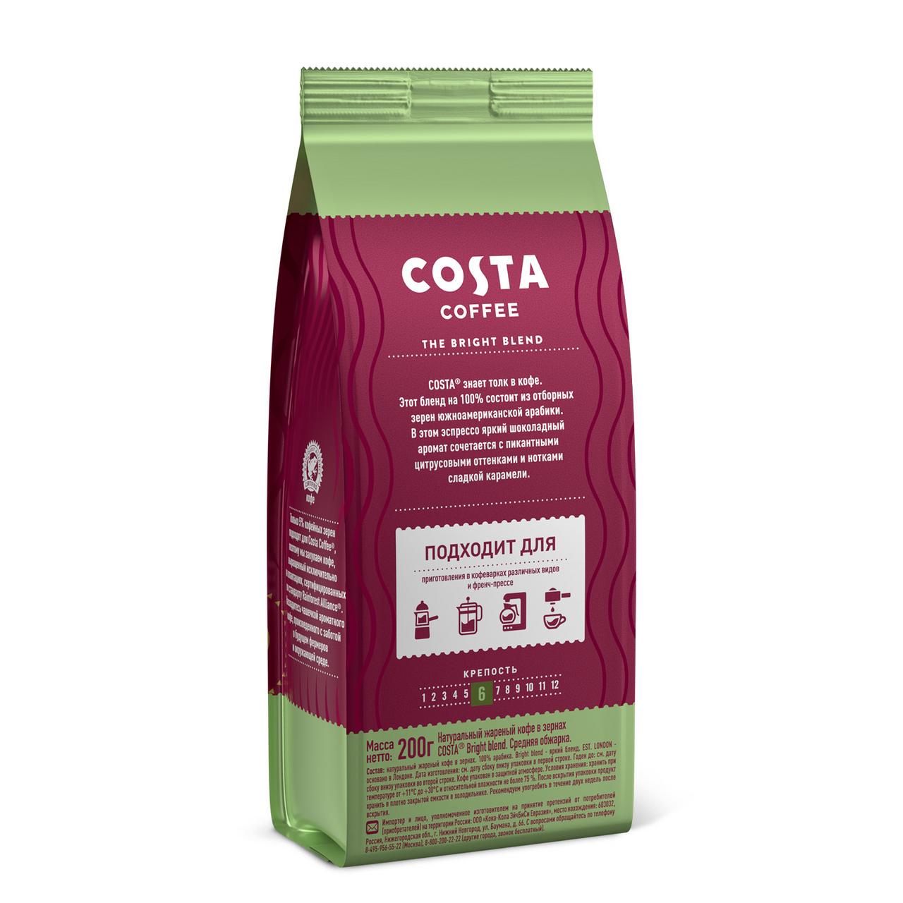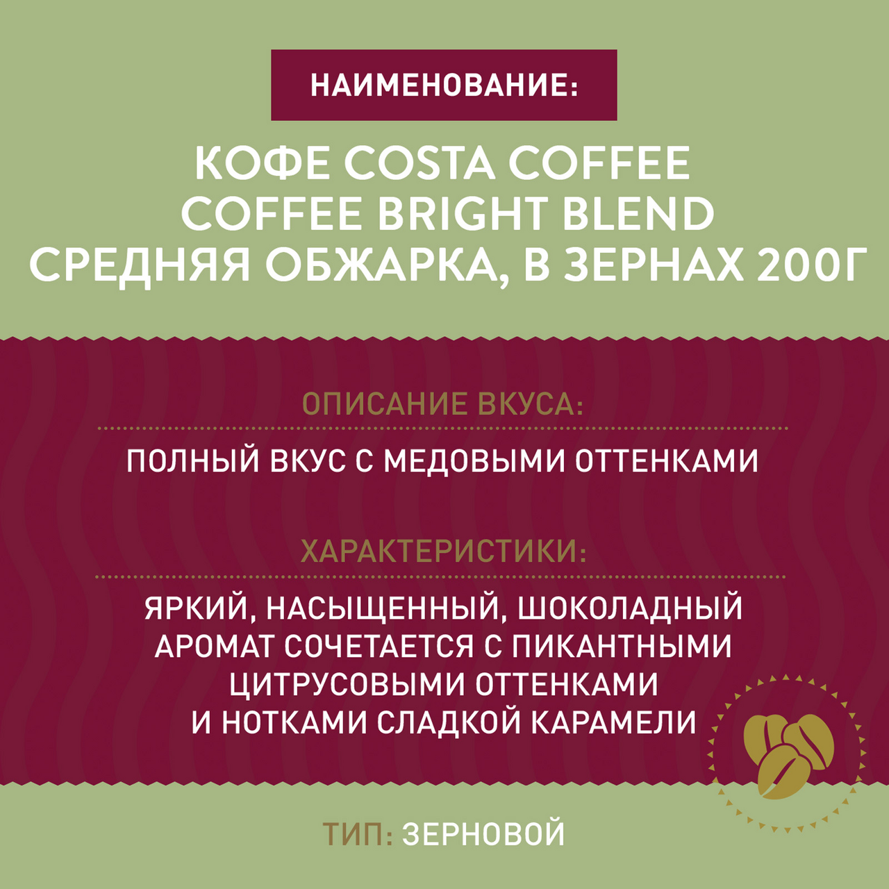 Кофе Costa Coffee Bright Blend в зернах средней обжарки, 200г