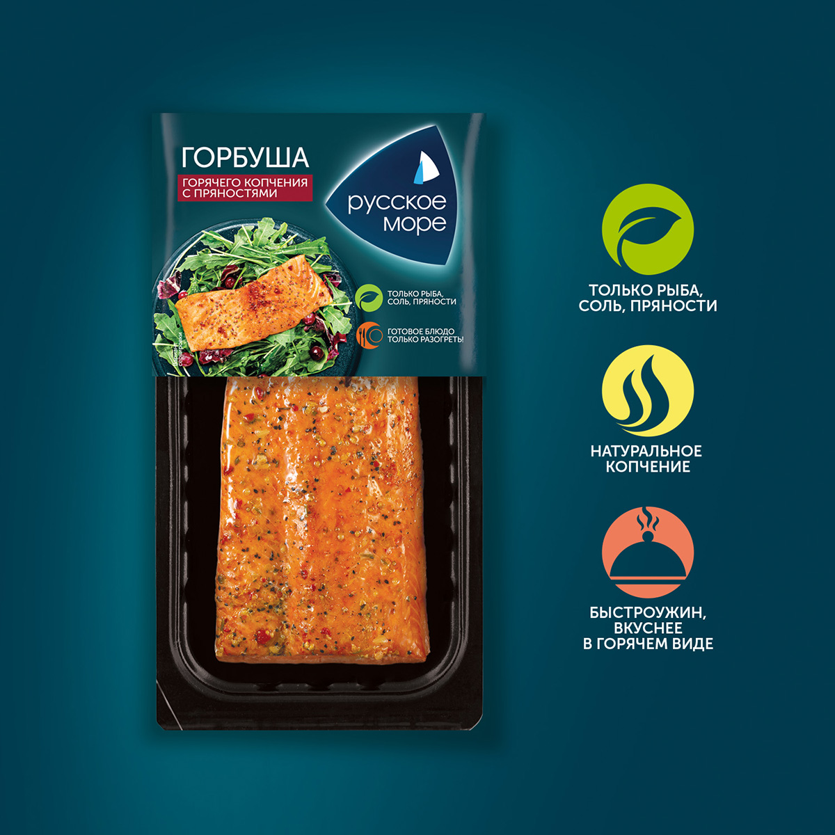 Горбуша Русское море с пряностями горячего копчения филе охлажденная, 200г