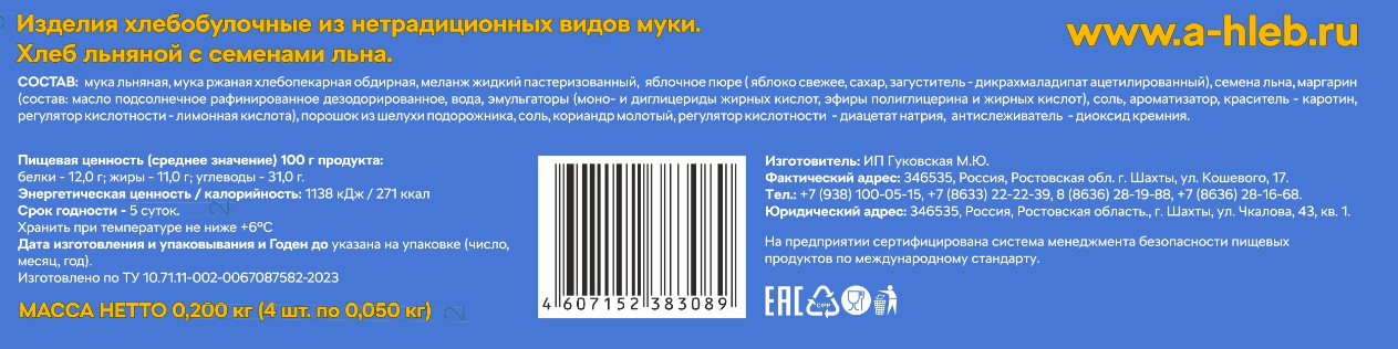 Хлеб льняной Аютинский хлеб с семенами льна, 200г