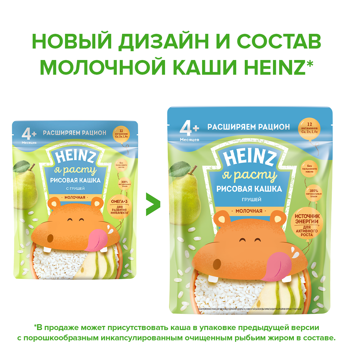 Благодаря добавлению молока фруктовые рисовые каши Heinz имеют высокую питательную ценность и обеспечивают ребенка дополнительной энергией. Молочные каши отличаются сбалансированной рецептурой, разработанной с учетом пищевых потребностей детей старше 4 месяцев. Детская каша с молоком и фруктами богата растительными белками — источниками незаменимых аминокислот. Продукция содержит необходимые для развития витамины C, E, группы B и минеральные вещества: кальций, йод, цинк, железо.