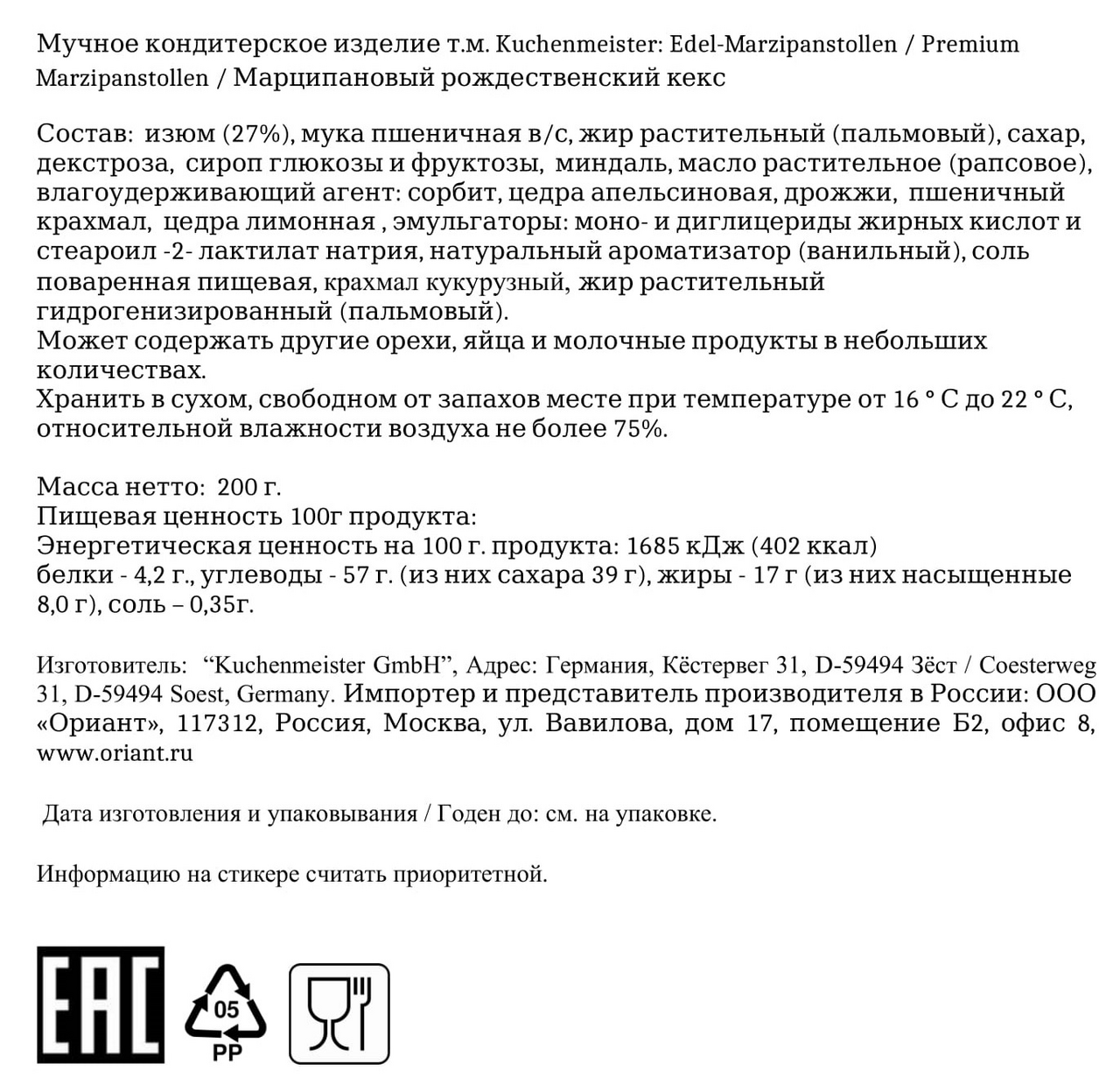 Кекс Kuchenmeister Марципановый штоллен, 200г