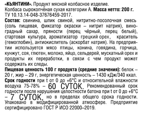 Колбаса Йола Кьянтини сырокопченая, 200г
