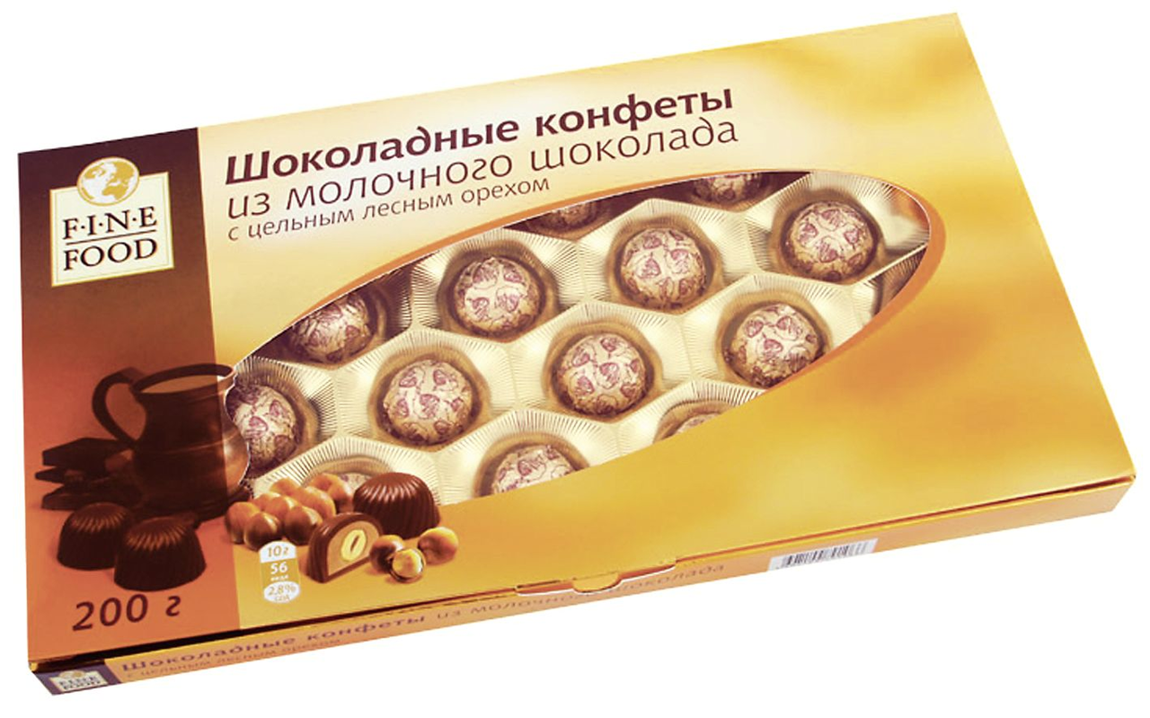 Конфеты FINE LIFE Молочный шоколад с цельными орехами, 200г