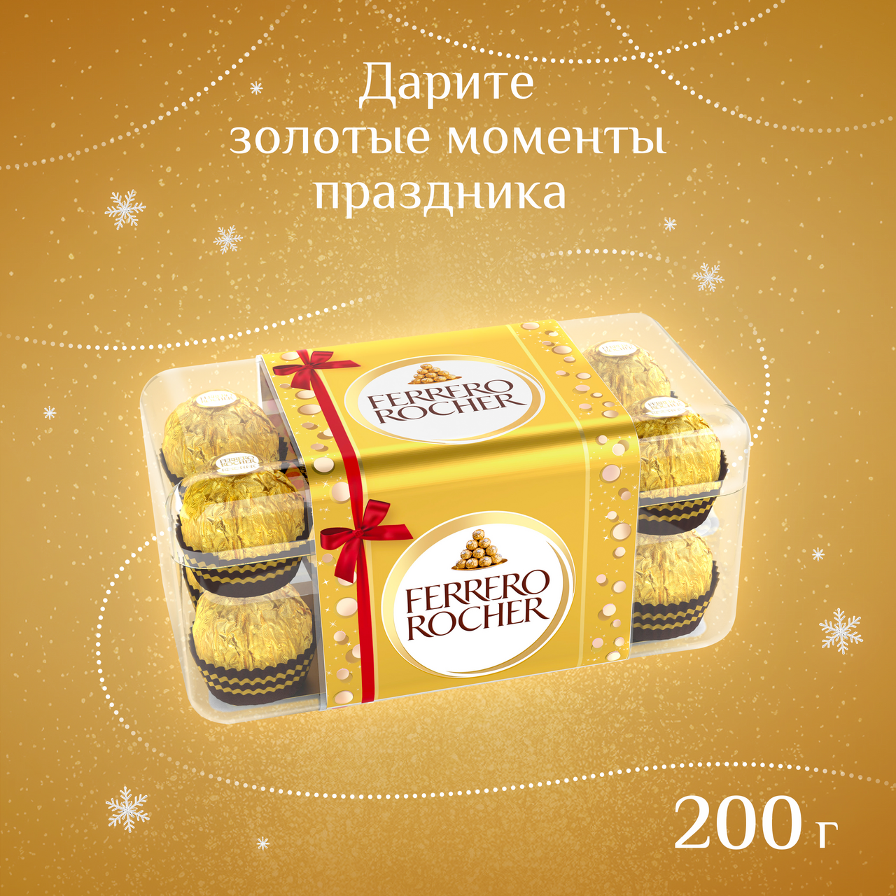 Откройте для себя восхитительное сочетание жареного лесного ореха в оболочке из нежного шоколада и хрустящих вафель. В какой бы роли вы ни выступали — желанных гостей или радушных хозяев — набор из 16 конфет Ferrero Rocher будет очень кстати в небольшой компании. Подарочный набор из 16 конфетИдеальный выбор для встреч в кругу друзей и близких.